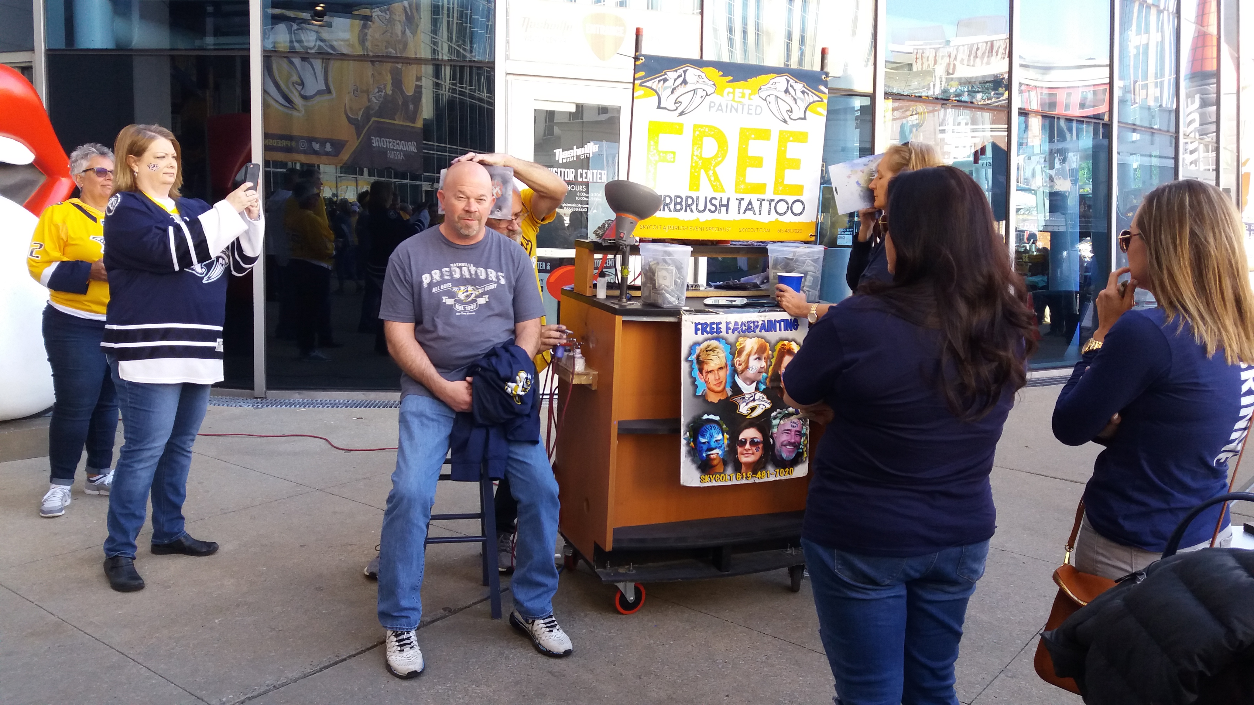 Aber die verrückteste Idee… man konnte sich auf die freien Körperteile das Logo der Predators brushen lassen. 😲😎