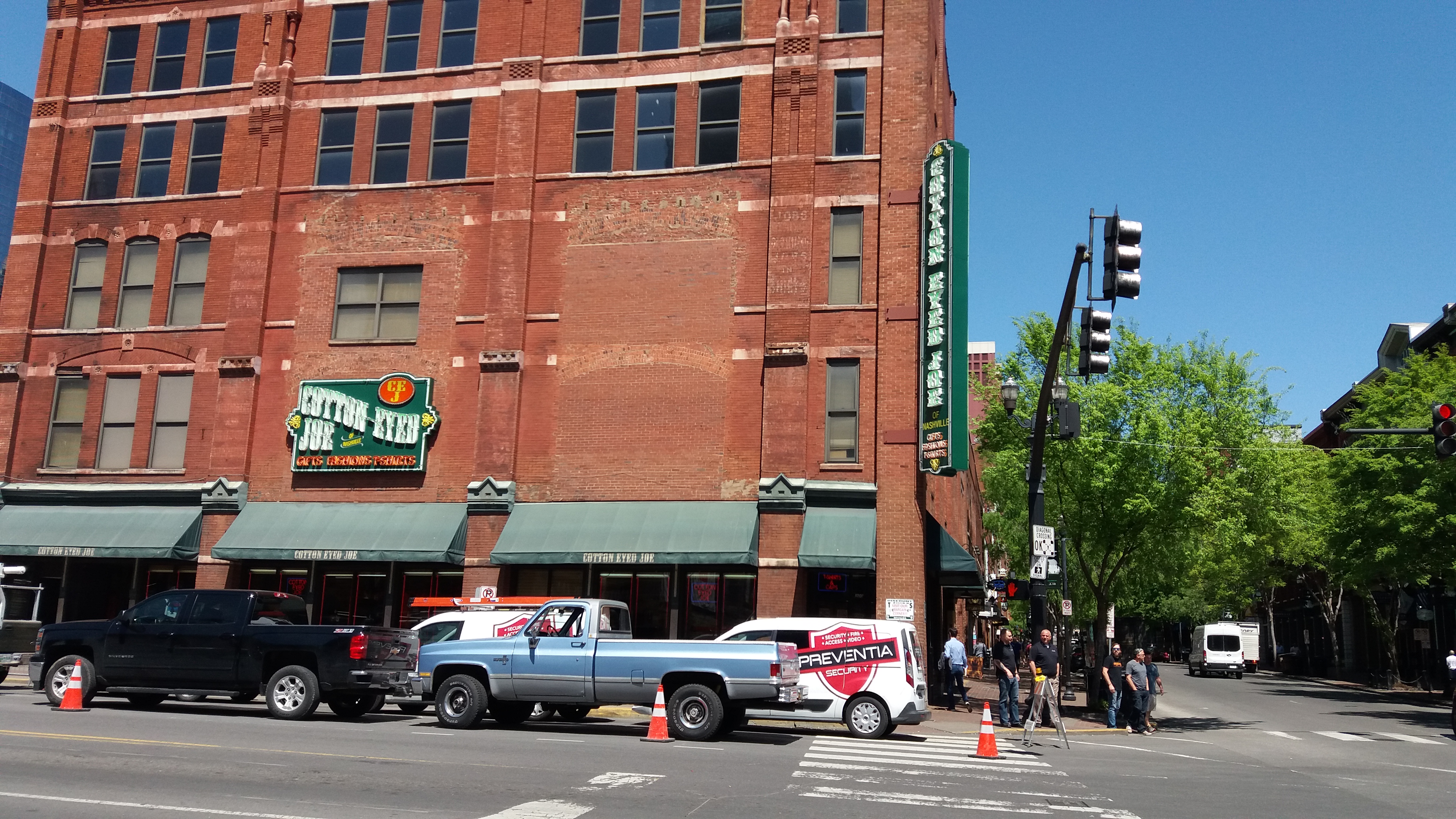 Wie in allen Großstädten ist auch Nashville von der Rush Hour betroffen. Im Fernsehen hieß es… bis zu 48 Minuten Fahrzeit stadteinwärts. Irgendwie hatten wir aber Glück gehabt, oder unser Großstadtinstinkt hat uns geholfen. 🙈 Die Parkplatzsuche hatten wir auf der Fahrt abgeschrieben. Also stellten wir uns wieder auf den Parkplatz vom Vortag. Nashville am Morgen… das fühlt sich ziemlich leer an, wenn man noch an den Vortag denkt. 😎