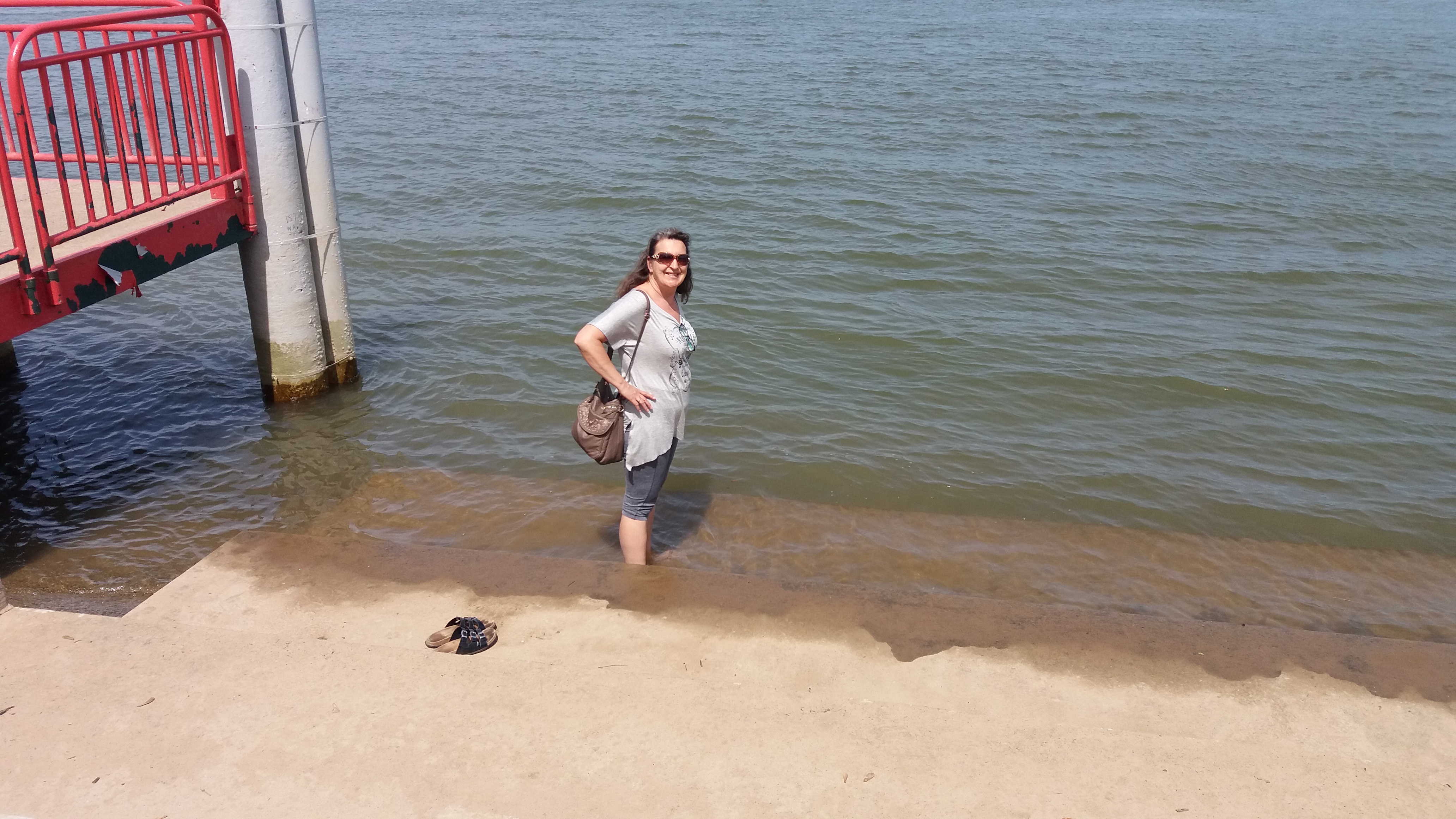 Bine musste natürlich auch gleich das Wasser testen. 😎 Schließlich wollen wir ja den Sonnenuntergang am Ufer erleben.