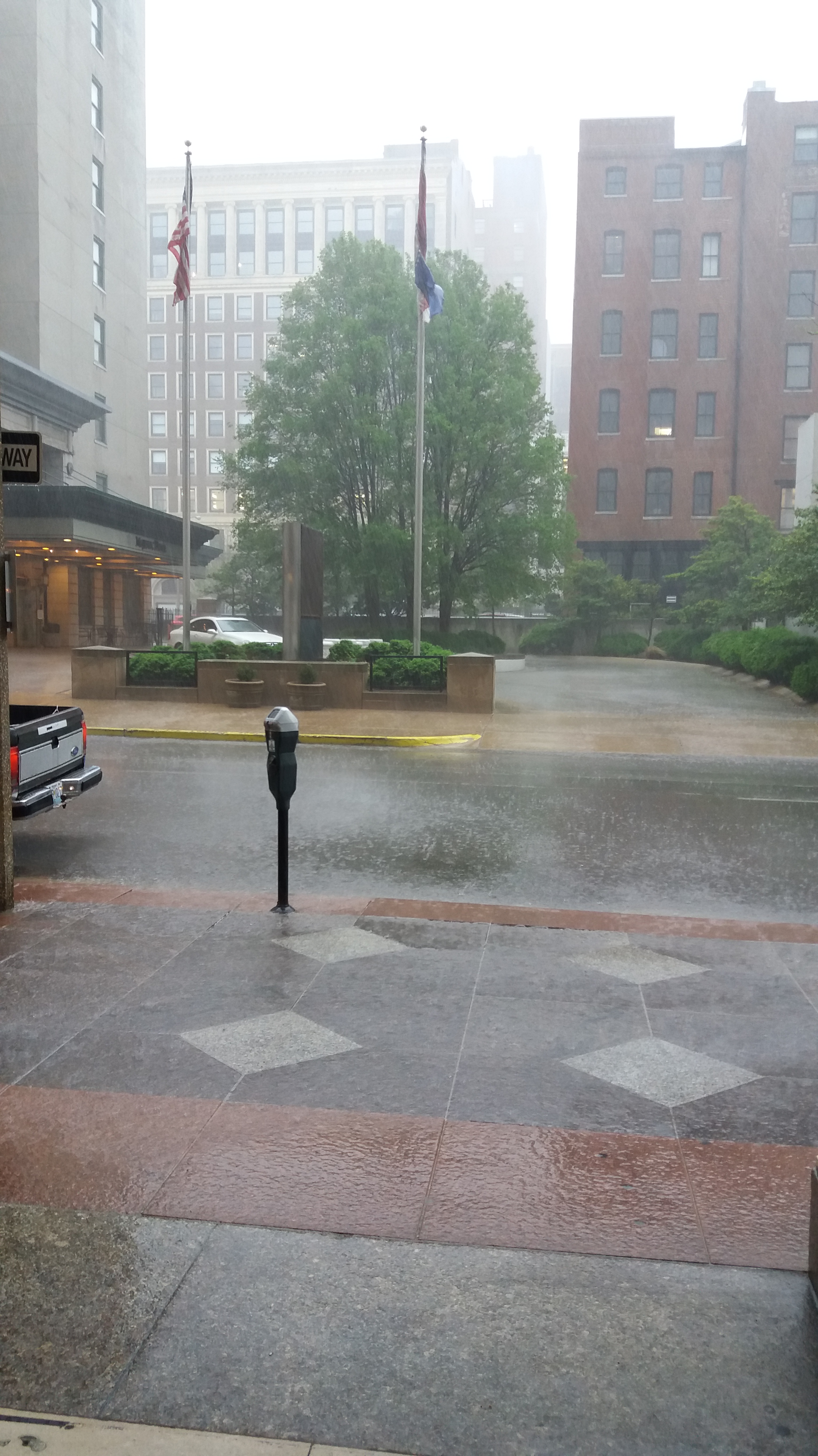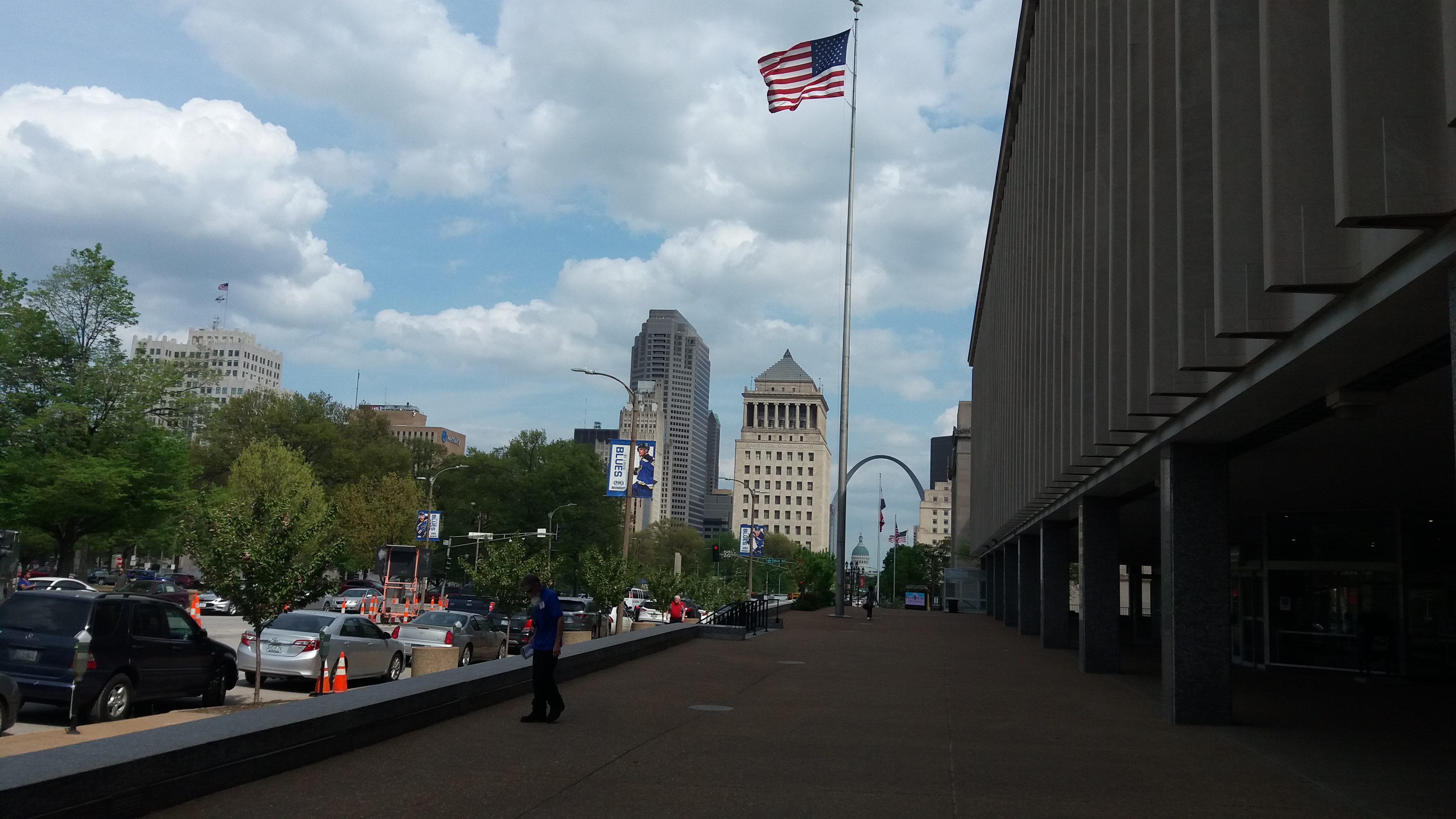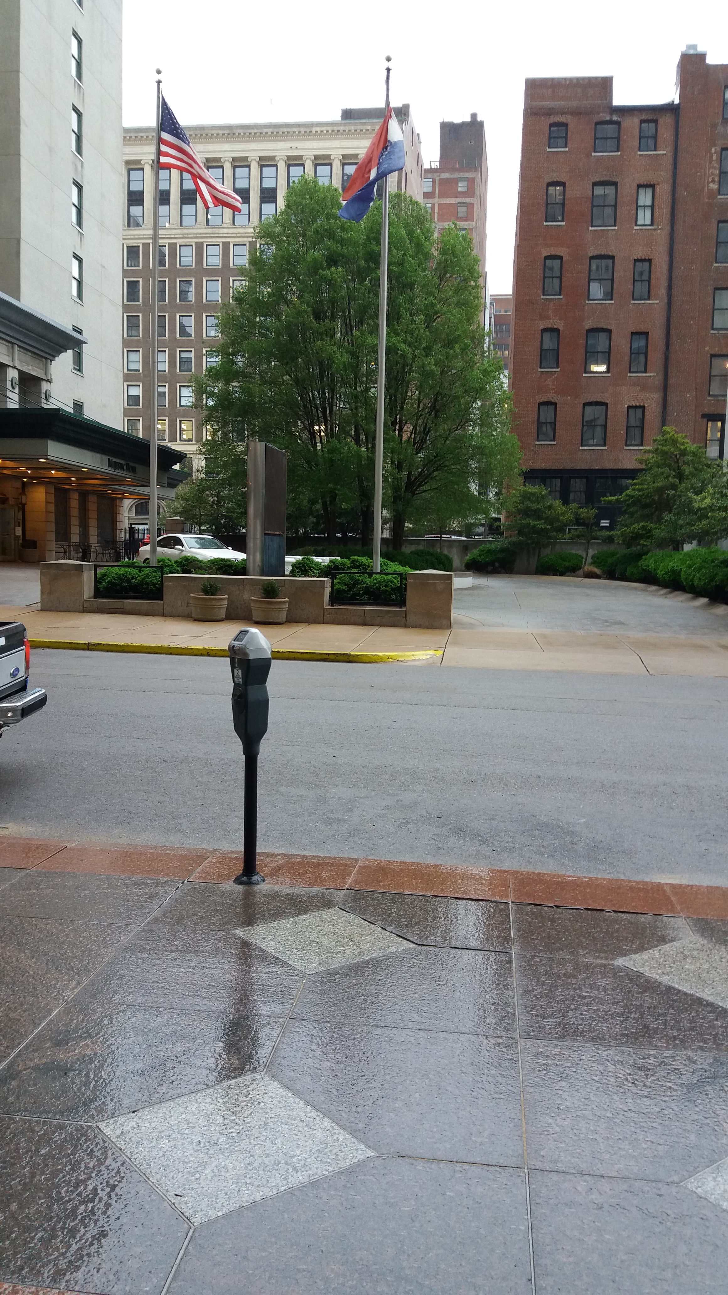 16:00 Uhr Da wollten wir nochmal den Versuch starten, um St. Louis unsicher zu machen. Da wir vom Zimmer aus keine Sicht auf das Wetter hatten, mussten wir uns in die Hotellobby begeben. Aber das Wetter hatte leider nicht auf den Wetterbericht gehört. Es fiel noch immer Wasser vom Himmel. Mit anderen Worten… St. Louis machte uns den Blues. 😎 Also blieb uns nichts weiter übrig, als die Bar zu testen. Wir gaben dem Regen eine Stunde… und… es hatte aufgehört zu regnen. Also raus aus dem Hotel und irgendeine Richtung einschlagen. Aber hallo… es regnete zwar nicht mehr, aber dafür hatten wir ordentlich Rückenwind. Das muss der Sturm sein, von dem im Fernsehen berichtet wurde. Aber solange die Schafe noch Locken tragen, ist es kein Sturm! 😂😄👍🙈