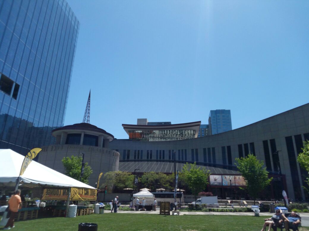 Irgendwann ist uns bei unserem Streifzug dann eingefallen, dass in Nashville heute das CANarchy anfangen sollte. Also begaben wir uns zum Platz vor der Hall of Fame. Hier stand schon eine große Bühne, wo gerade Live-Musik begann. Und es gab Bier… was den Namen der Veranstaltung erklärt. 😂😎🍻